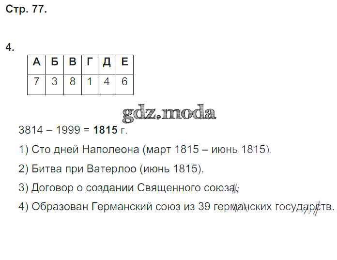ГДЗ решение к заданию № 77 История 8 класс рабочая тетрадь Юдовская А.Я. Просвещение 2017 Часть 1, Часть 2 ФГОС бесплатно на гдз.мода!