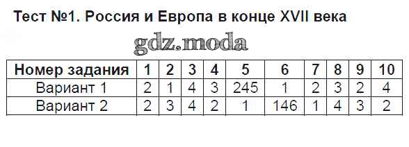 ОТВЕТ на задание № 1 Тесты по Истории 8 класс Воробьёва УМК