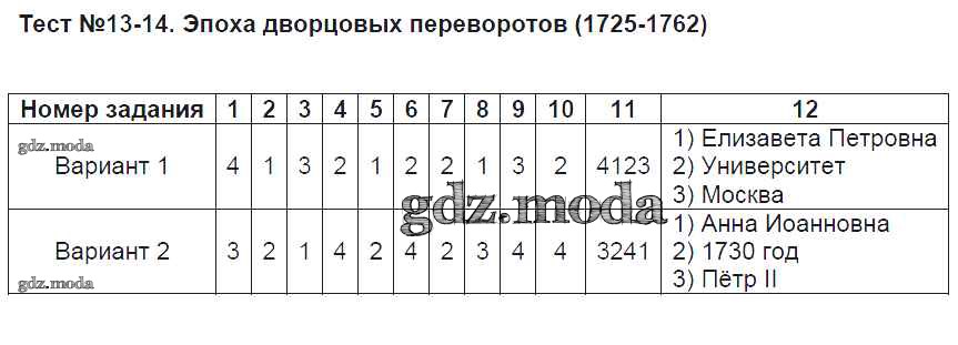 ОТВЕТ на задание № 13 Тесты по Истории 8 класс Воробьёва УМК
