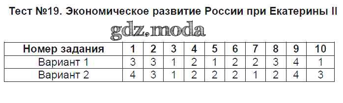 ОТВЕТ на задание № 19 Тесты по Истории 8 класс Воробьёва УМК