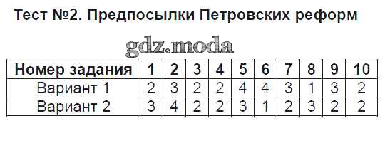 ОТВЕТ на задание № 2 Тесты по Истории 8 класс Воробьёва УМК