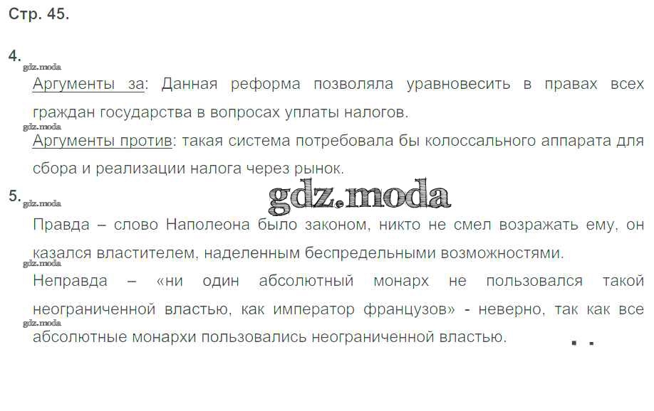 ГДЗ решение к заданию № 45 История 8 класс тетрадь-тренажёр Лазарева А.В. Просвещение 2017 ФГОС бесплатно на гдз.мода!