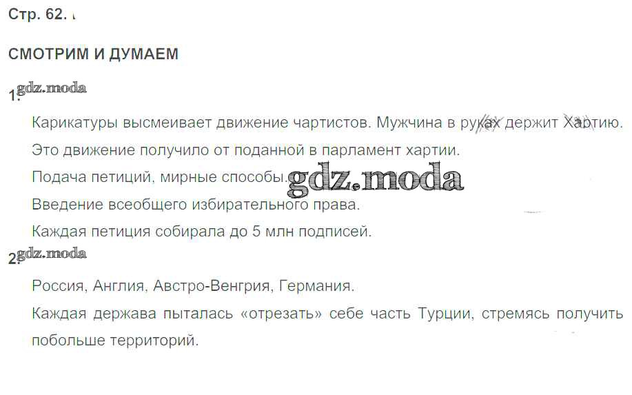 ГДЗ решение к заданию № 62 История 8 класс тетрадь-тренажёр Лазарева А.В. Просвещение 2017 ФГОС бесплатно на гдз.мода!