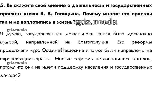 ГДЗ решение к заданию № 5 История России 8 класс Арсентьев Н.М. Просвещение 2016 Часть 1, Часть 2 ФГОС бесплатно на гдз.мода!