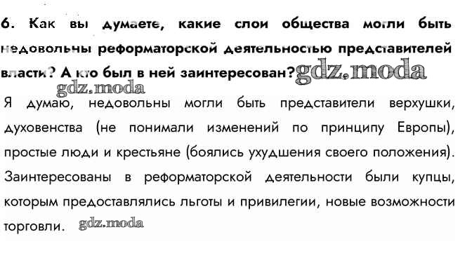ГДЗ решение к заданию № 6 История России 8 класс Арсентьев Н.М. Просвещение 2016 Часть 1, Часть 2 ФГОС бесплатно на гдз.мода!