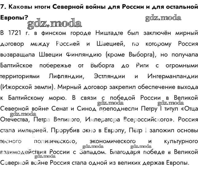 ГДЗ решение к заданию № 7 История России 8 класс Арсентьев Н.М. Просвещение 2016 Часть 1, Часть 2 ФГОС бесплатно на гдз.мода!