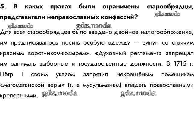 ГДЗ решение к заданию № 5 История России 8 класс Арсентьев Н.М. Просвещение 2016 Часть 1, Часть 2 ФГОС бесплатно на гдз.мода!