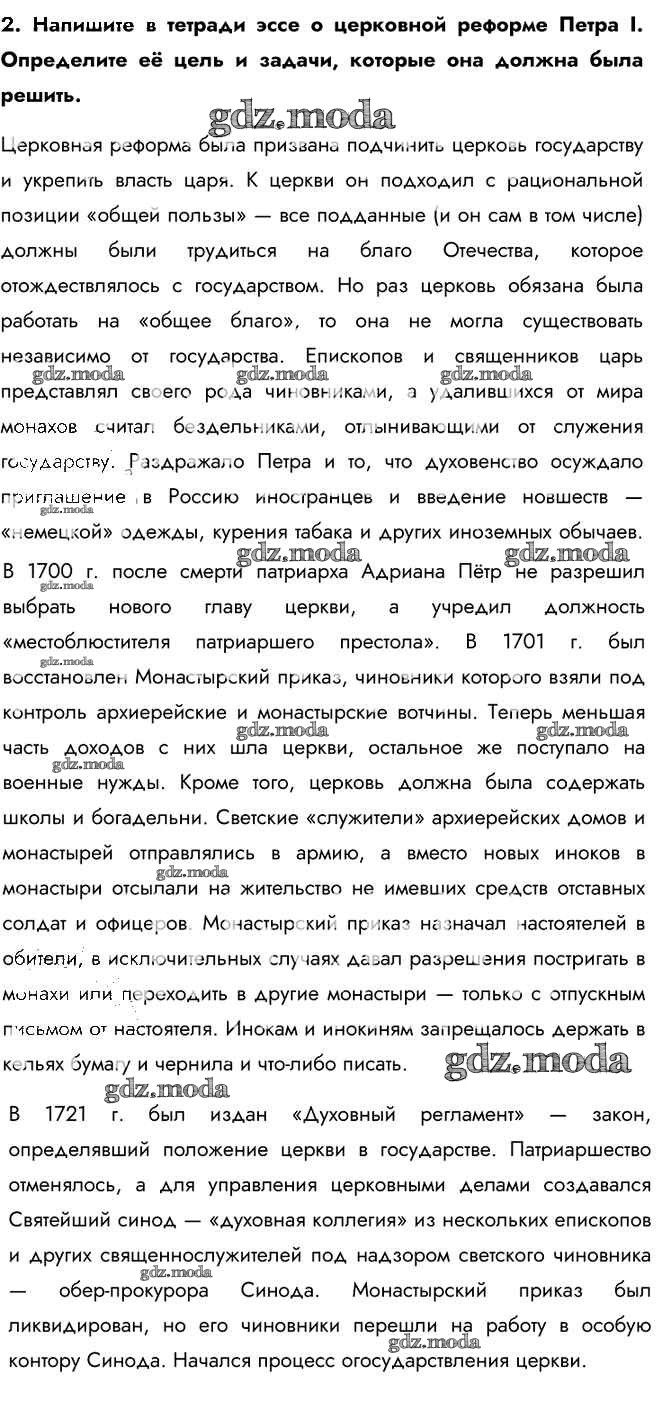 ГДЗ решение к заданию № 2 История России 8 класс Арсентьев Н.М. Просвещение 2016 Часть 1, Часть 2 ФГОС бесплатно на гдз.мода!