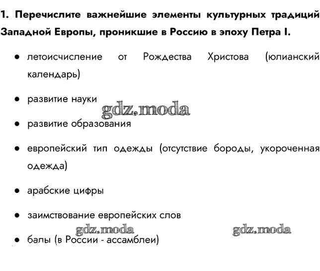 ГДЗ решение к заданию № 1 История России 8 класс Арсентьев Н.М. Просвещение 2016 Часть 1, Часть 2 ФГОС бесплатно на гдз.мода!