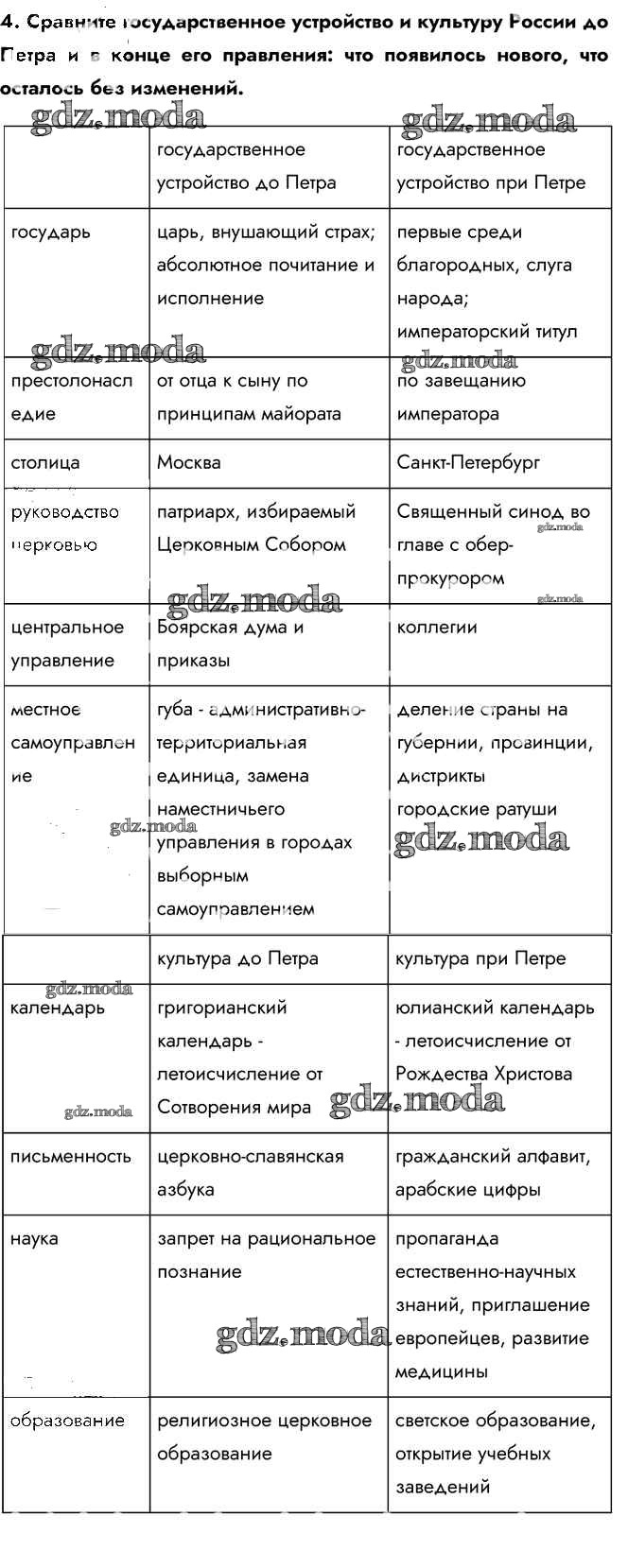 ГДЗ решение к заданию № 4 История России 8 класс Арсентьев Н.М. Просвещение 2016 Часть 1, Часть 2 ФГОС бесплатно на гдз.мода!