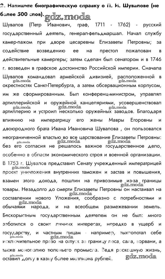 ГДЗ решение к заданию № 2 История России 8 класс Арсентьев Н.М. Просвещение 2016 Часть 1, Часть 2 ФГОС бесплатно на гдз.мода!