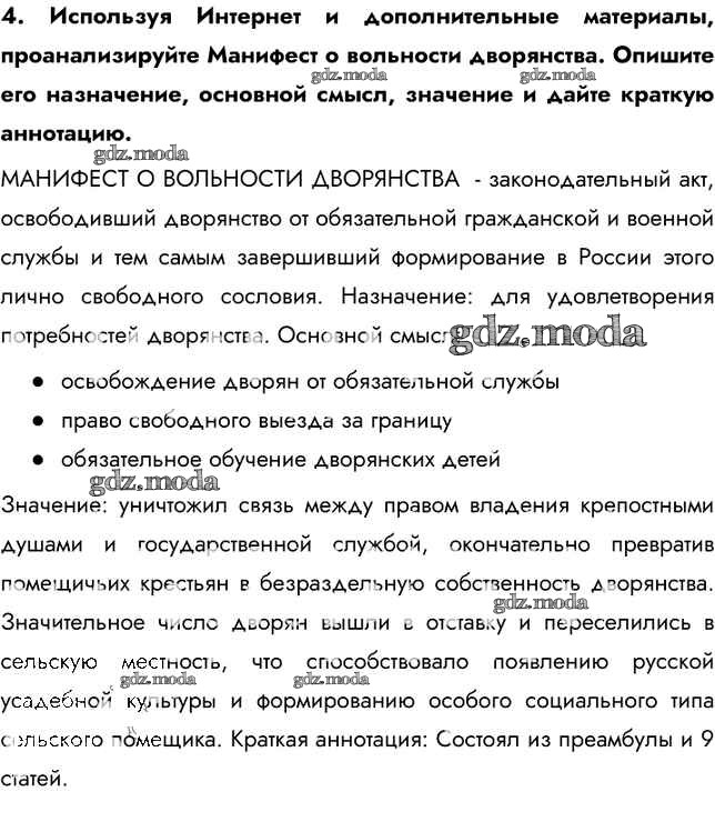 ОТВЕТ на задание № 4 Учебник по Истории 8 класс Арсентьев