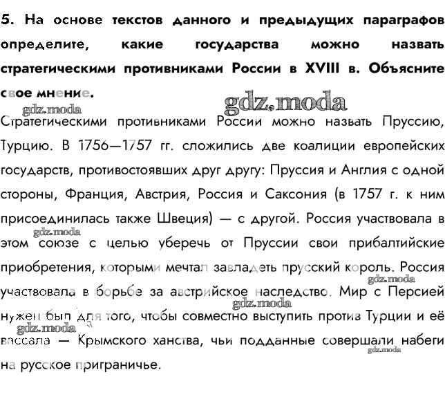 ГДЗ решение к заданию № 5 История России 8 класс Арсентьев Н.М. Просвещение 2016 Часть 1, Часть 2 ФГОС бесплатно на гдз.мода!