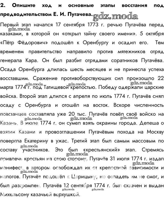 ГДЗ решение к заданию № 2 История России 8 класс Арсентьев Н.М. Просвещение 2016 Часть 1, Часть 2 ФГОС бесплатно на гдз.мода!