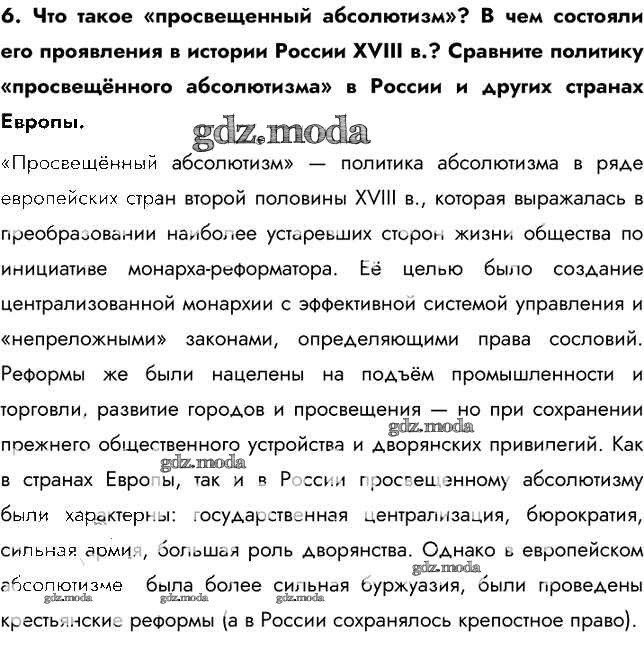 ОТВЕТ на задание № 6 Учебник по Истории 8 класс Арсентьев