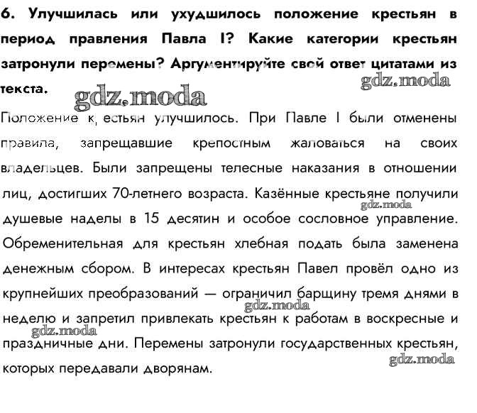 ГДЗ решение к заданию № 6 История России 8 класс Арсентьев Н.М. Просвещение 2016 Часть 1, Часть 2 ФГОС бесплатно на гдз.мода!