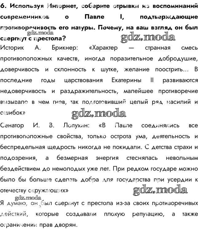 ГДЗ решение к заданию № 6 История России 8 класс Арсентьев Н.М. Просвещение 2016 Часть 1, Часть 2 ФГОС бесплатно на гдз.мода!