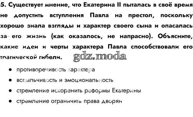 ГДЗ решение к заданию № 5 История России 8 класс Арсентьев Н.М. Просвещение 2016 Часть 1, Часть 2 ФГОС бесплатно на гдз.мода!