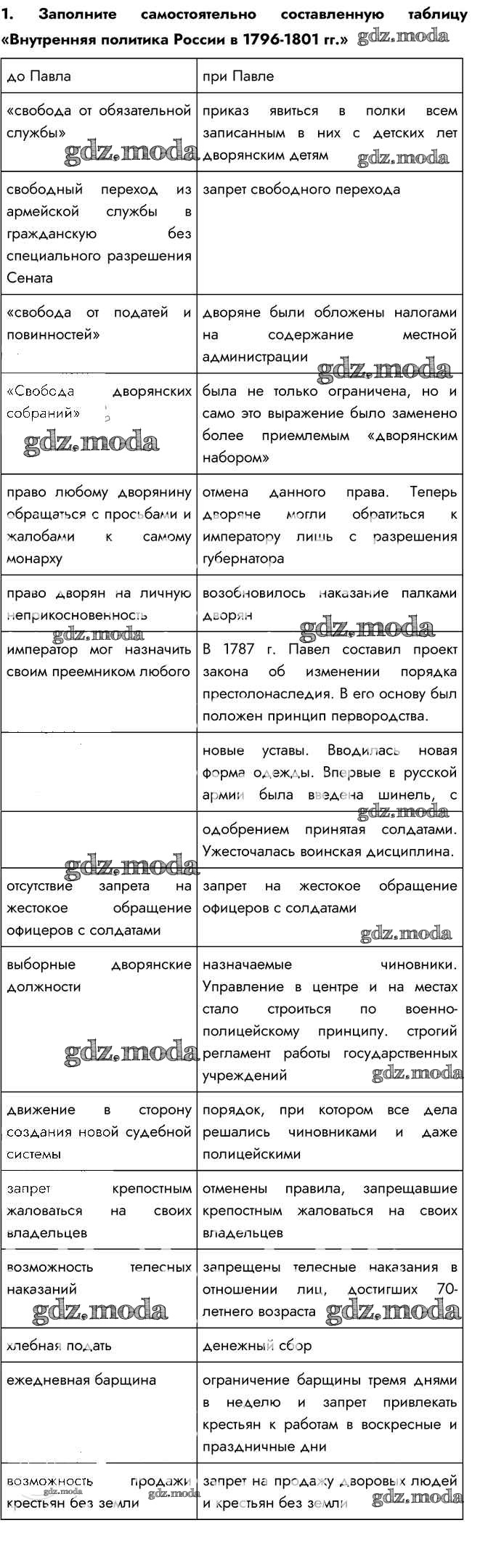 ГДЗ решение к заданию № 1 История России 8 класс Арсентьев Н.М. Просвещение 2016 Часть 1, Часть 2 ФГОС бесплатно на гдз.мода!