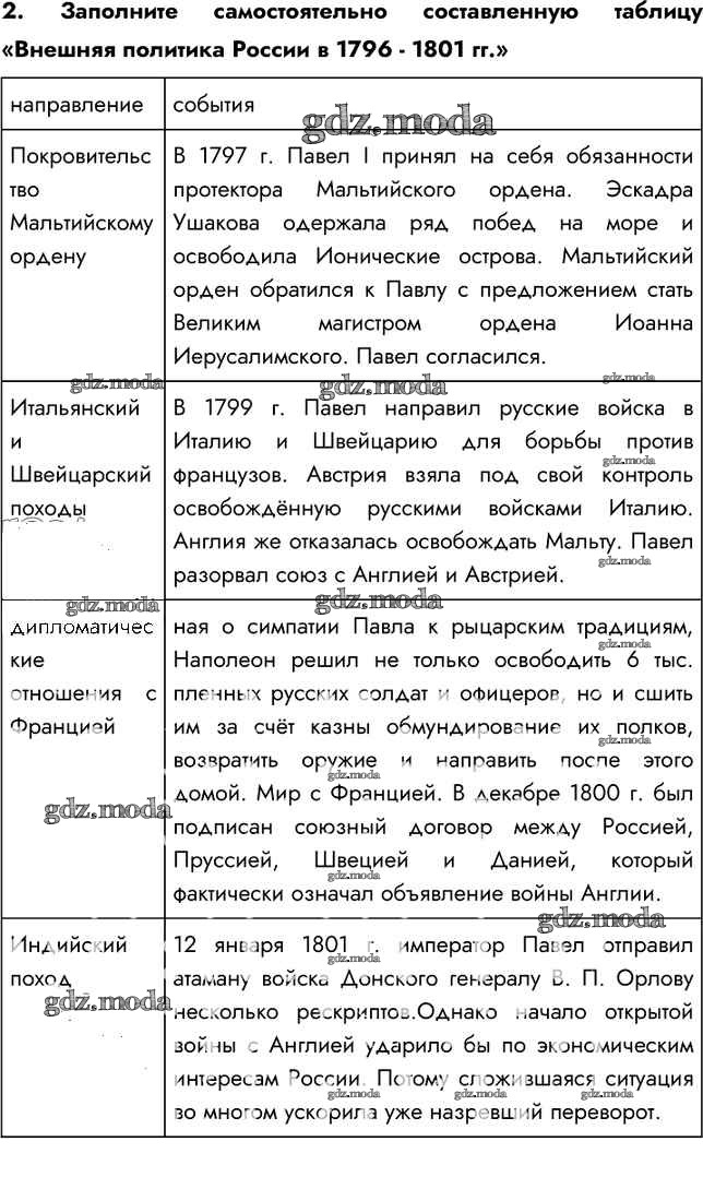 ГДЗ решение к заданию № 2 История России 8 класс Арсентьев Н.М. Просвещение 2016 Часть 1, Часть 2 ФГОС бесплатно на гдз.мода!