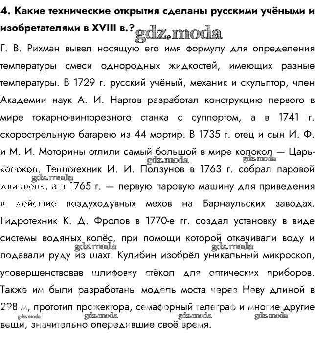 глава 5 / российская наука и техника в XVIII в. / вопрос, задание / 4