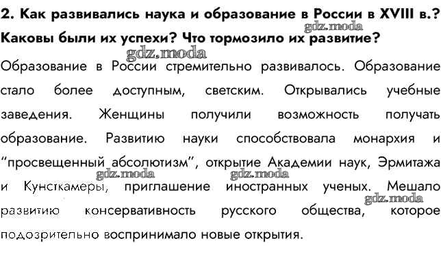 ОТВЕТ на задание № 2 Учебник по Истории 8 класс Арсентьев