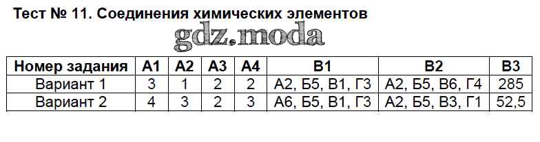 ГДЗ решение к заданию № 11 Химия 8 класс КИМ Троегубова Н.П. ВАКО 2018 ФГОС бесплатно на гдз.мода!