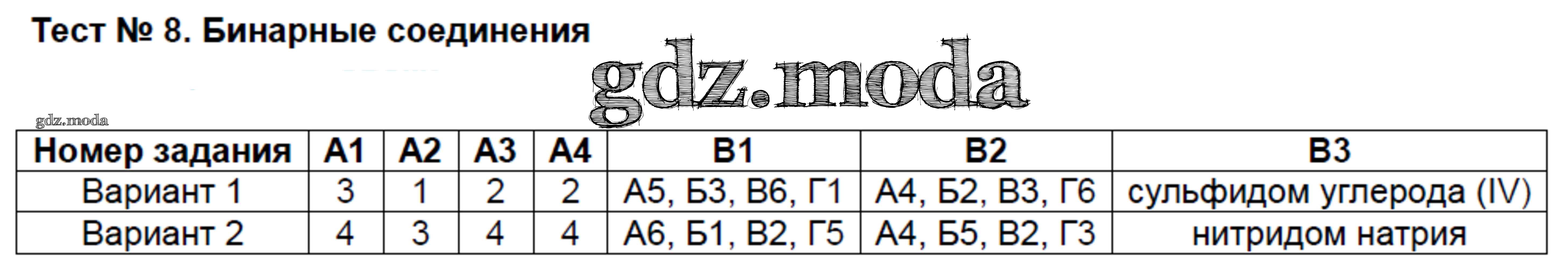 ГДЗ решение к заданию № 8 Химия 8 класс КИМ Троегубова Н.П. ВАКО 2018 ФГОС бесплатно на гдз.мода!