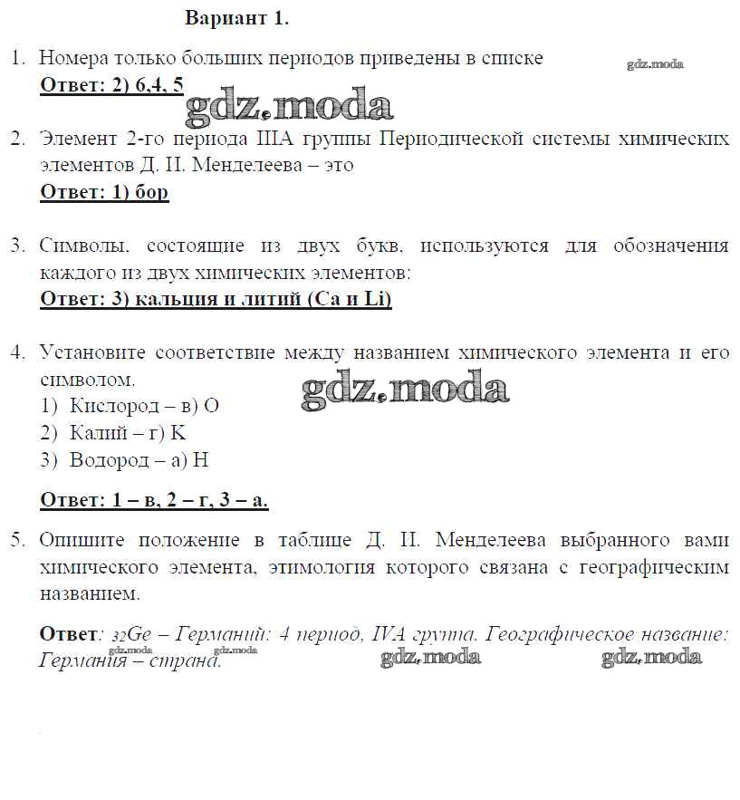 ГДЗ решение к заданию № 1 Химия 8 класс контрольные работы Габриелян О.С. Дрофа 2017 ФГОС бесплатно на гдз.мода!