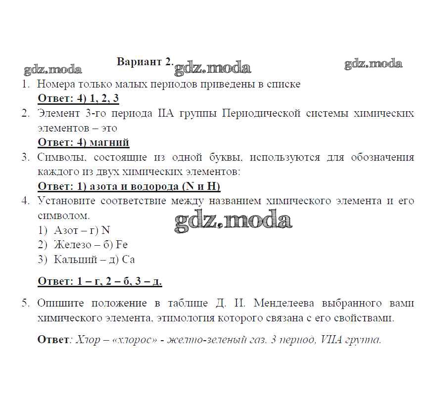 ГДЗ решение к заданию № 2 Химия 8 класс контрольные работы Габриелян О.С. Дрофа 2017 ФГОС бесплатно на гдз.мода!