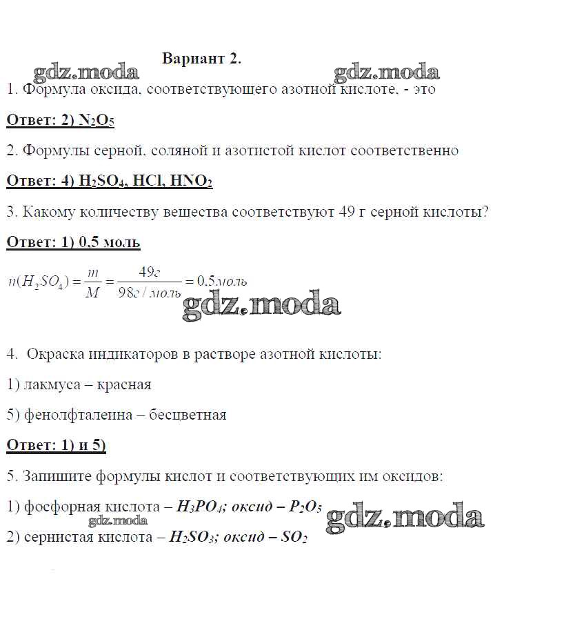 ГДЗ решение к заданию № 2 Химия 8 класс контрольные работы Габриелян О.С. Дрофа 2017 ФГОС бесплатно на гдз.мода!