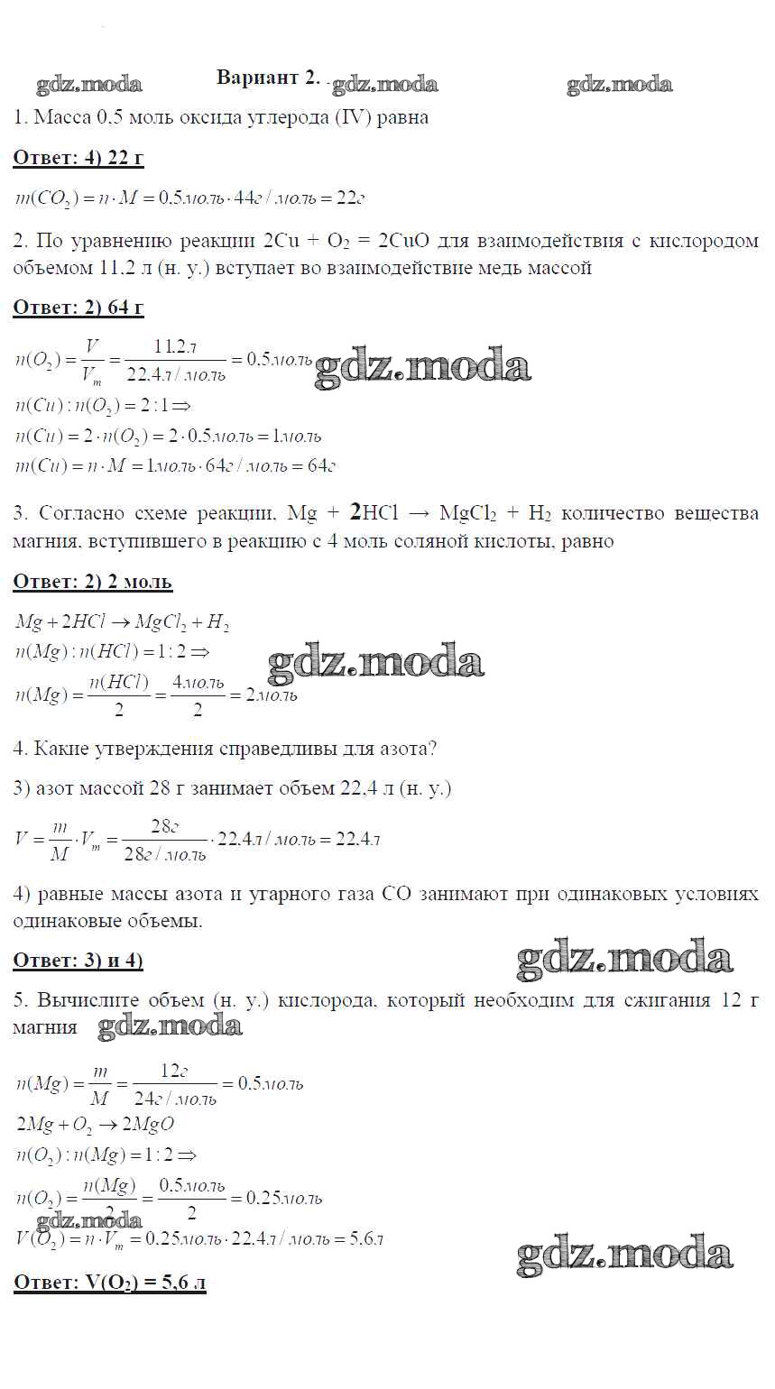 ГДЗ решение к заданию № 2 Химия 8 класс контрольные работы Габриелян О.С. Дрофа 2017 ФГОС бесплатно на гдз.мода!