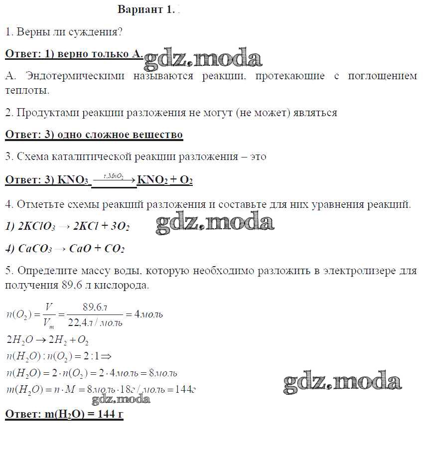 ГДЗ решение к заданию № 1 Химия 8 класс контрольные работы Габриелян О.С. Дрофа 2017 ФГОС бесплатно на гдз.мода!