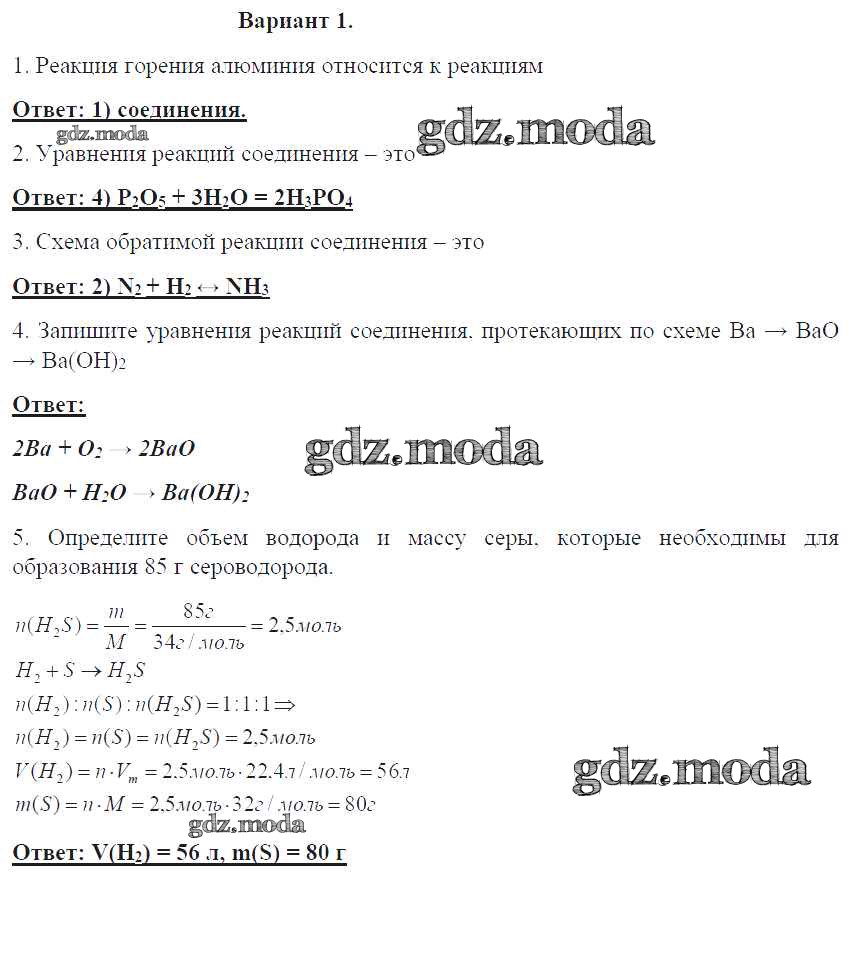 ГДЗ решение к заданию № 1 Химия 8 класс контрольные работы Габриелян О.С. Дрофа 2017 ФГОС бесплатно на гдз.мода!