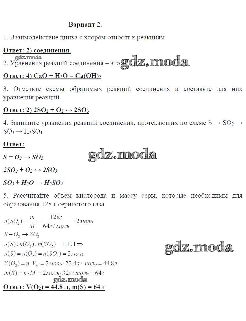 ГДЗ решение к заданию № 2 Химия 8 класс контрольные работы Габриелян О.С. Дрофа 2017 ФГОС бесплатно на гдз.мода!