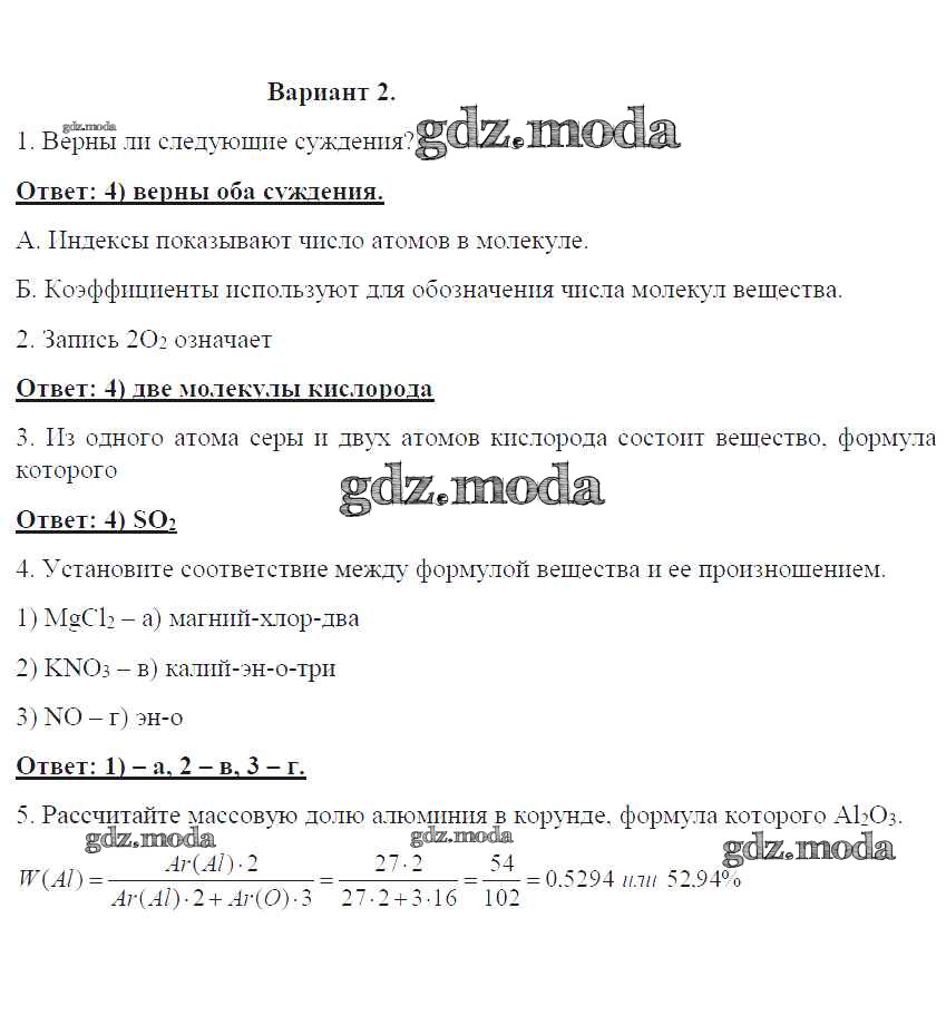 ГДЗ решение к заданию № 2 Химия 8 класс контрольные работы Габриелян О.С. Дрофа 2017 ФГОС бесплатно на гдз.мода!