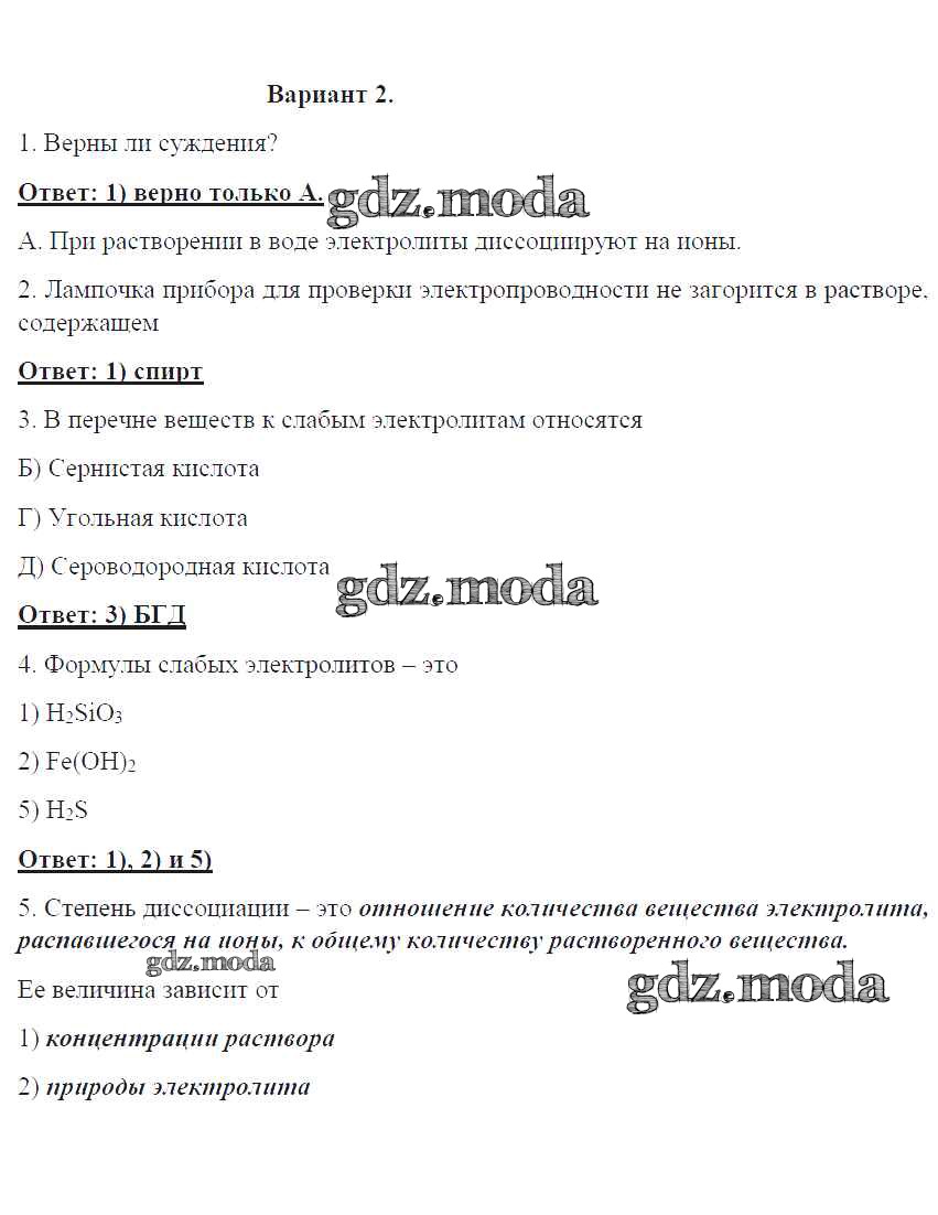 ГДЗ решение к заданию № 2 Химия 8 класс контрольные работы Габриелян О.С. Дрофа 2017 ФГОС бесплатно на гдз.мода!