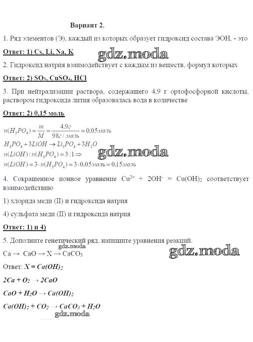 ГДЗ решение к заданию № 2 Химия 8 класс контрольные работы Габриелян О.С. Дрофа 2017 ФГОС бесплатно на гдз.мода!