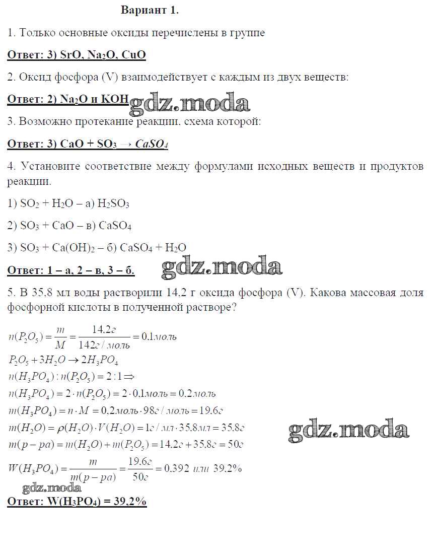 ГДЗ решение к заданию № 1 Химия 8 класс контрольные работы Габриелян О.С. Дрофа 2017 ФГОС бесплатно на гдз.мода!