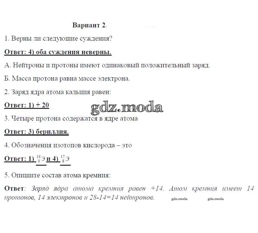 ГДЗ решение к заданию № 2 Химия 8 класс контрольные работы Габриелян О.С. Дрофа 2017 ФГОС бесплатно на гдз.мода!