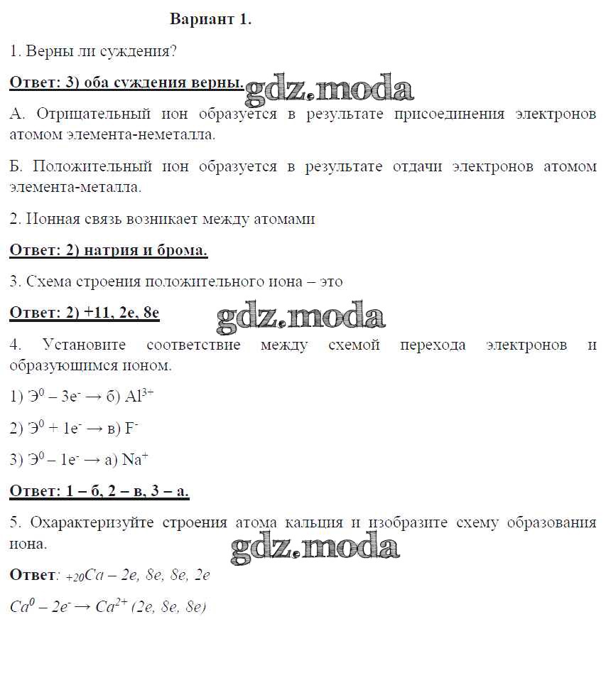 ГДЗ решение к заданию № 1 Химия 8 класс контрольные работы Габриелян О.С. Дрофа 2017 ФГОС бесплатно на гдз.мода!