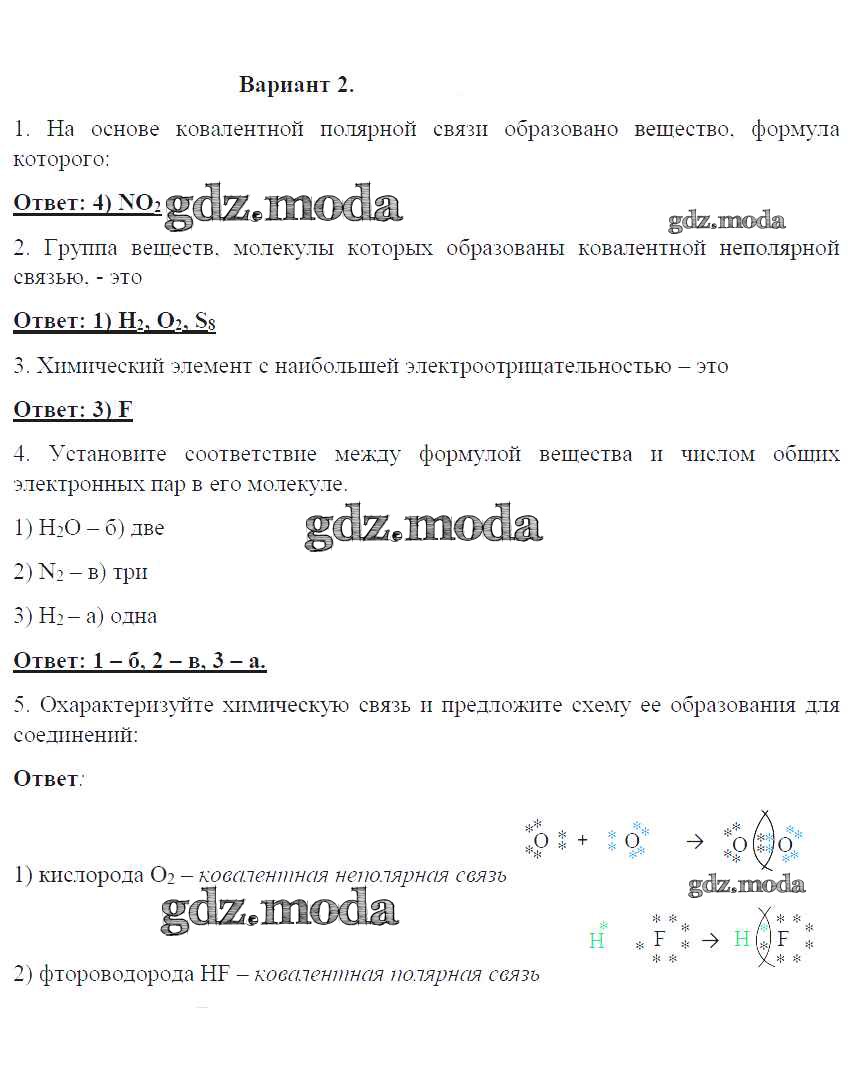 ГДЗ решение к заданию № 2 Химия 8 класс контрольные работы Габриелян О.С. Дрофа 2017 ФГОС бесплатно на гдз.мода!