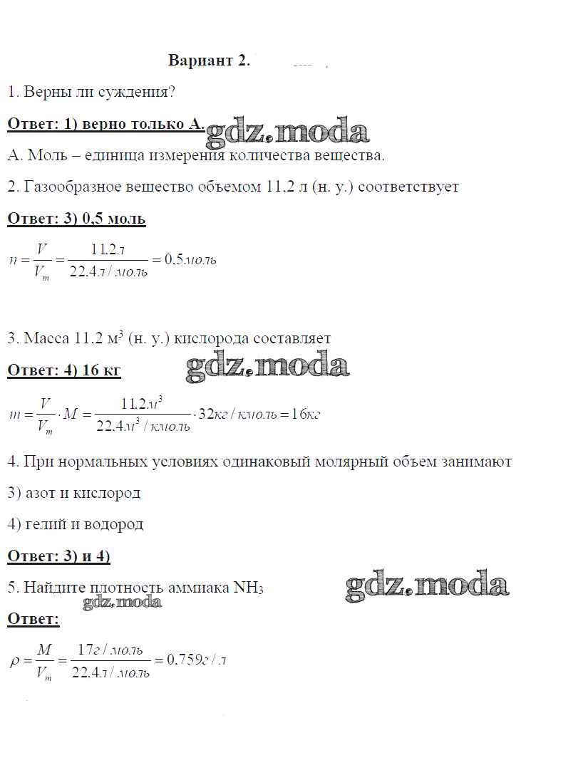 ГДЗ решение к заданию № 2 Химия 8 класс контрольные работы Габриелян О.С. Дрофа 2017 ФГОС бесплатно на гдз.мода!