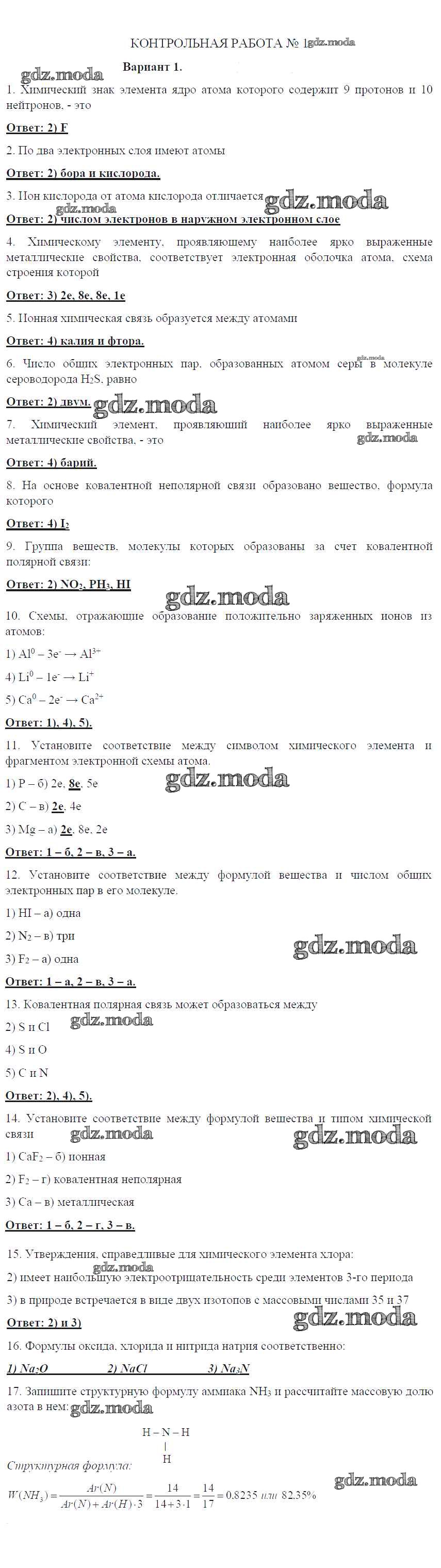 ГДЗ решение к заданию № 1 Химия 8 класс контрольные работы Габриелян О.С. Дрофа 2017 ФГОС бесплатно на гдз.мода!