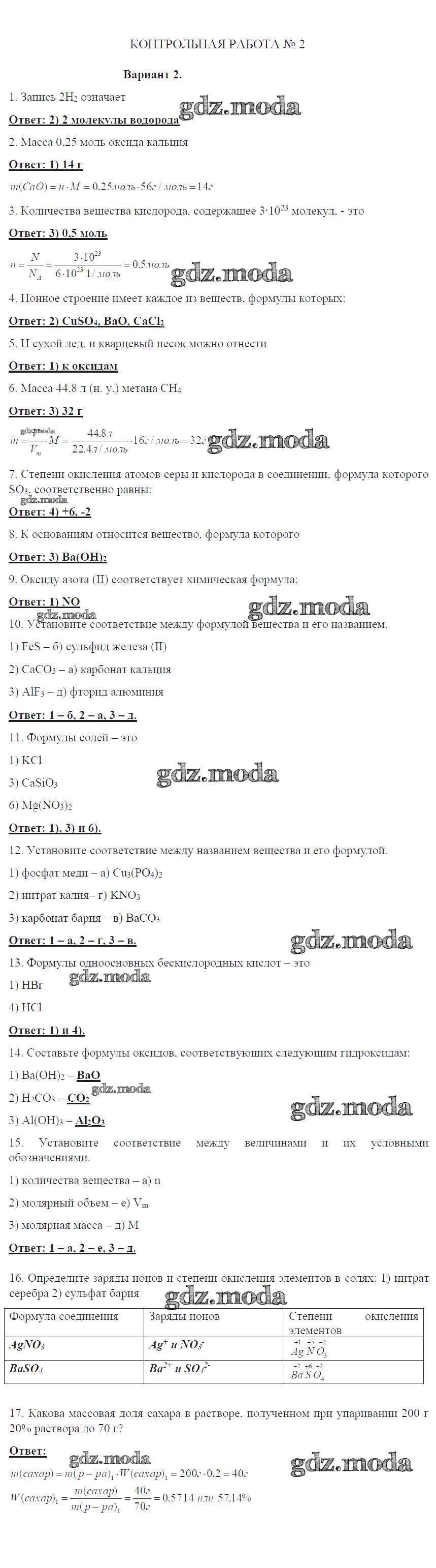 ГДЗ решение к заданию № 2 Химия 8 класс контрольные работы Габриелян О.С. Дрофа 2017 ФГОС бесплатно на гдз.мода!