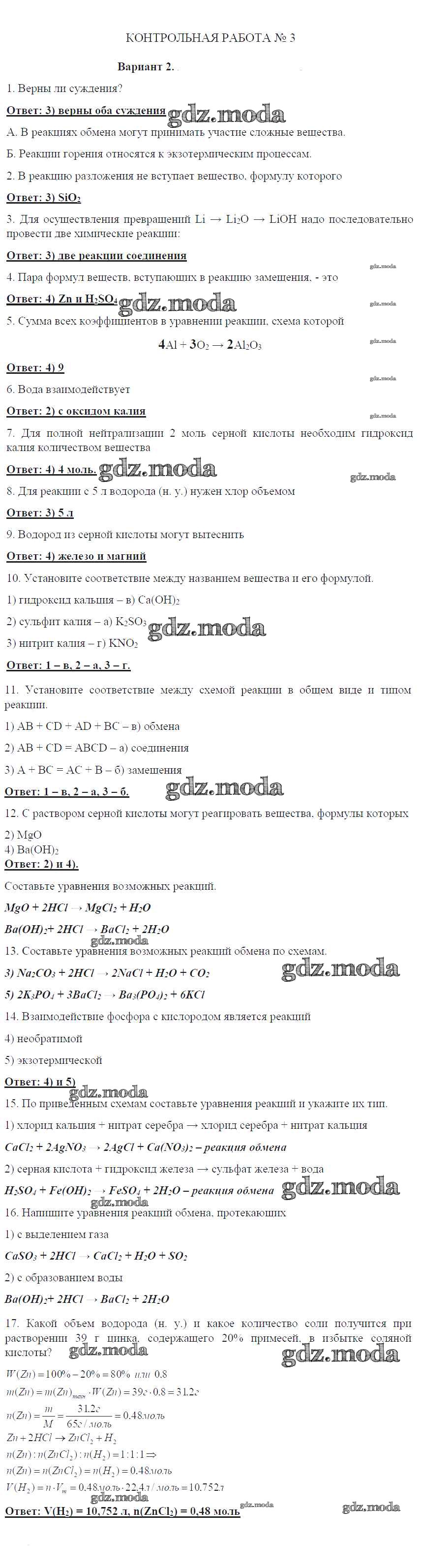 ГДЗ решение к заданию № 2 Химия 8 класс контрольные работы Габриелян О.С. Дрофа 2017 ФГОС бесплатно на гдз.мода!
