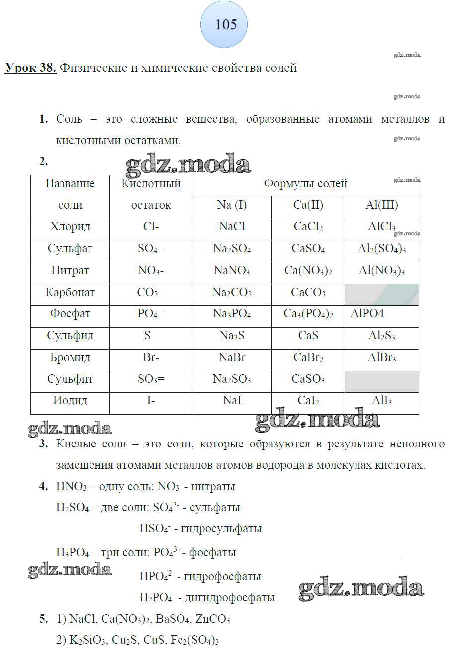 ОТВЕТ на задание № 105 Рабочая тетрадь по Химии 8 класс Боровских УМК