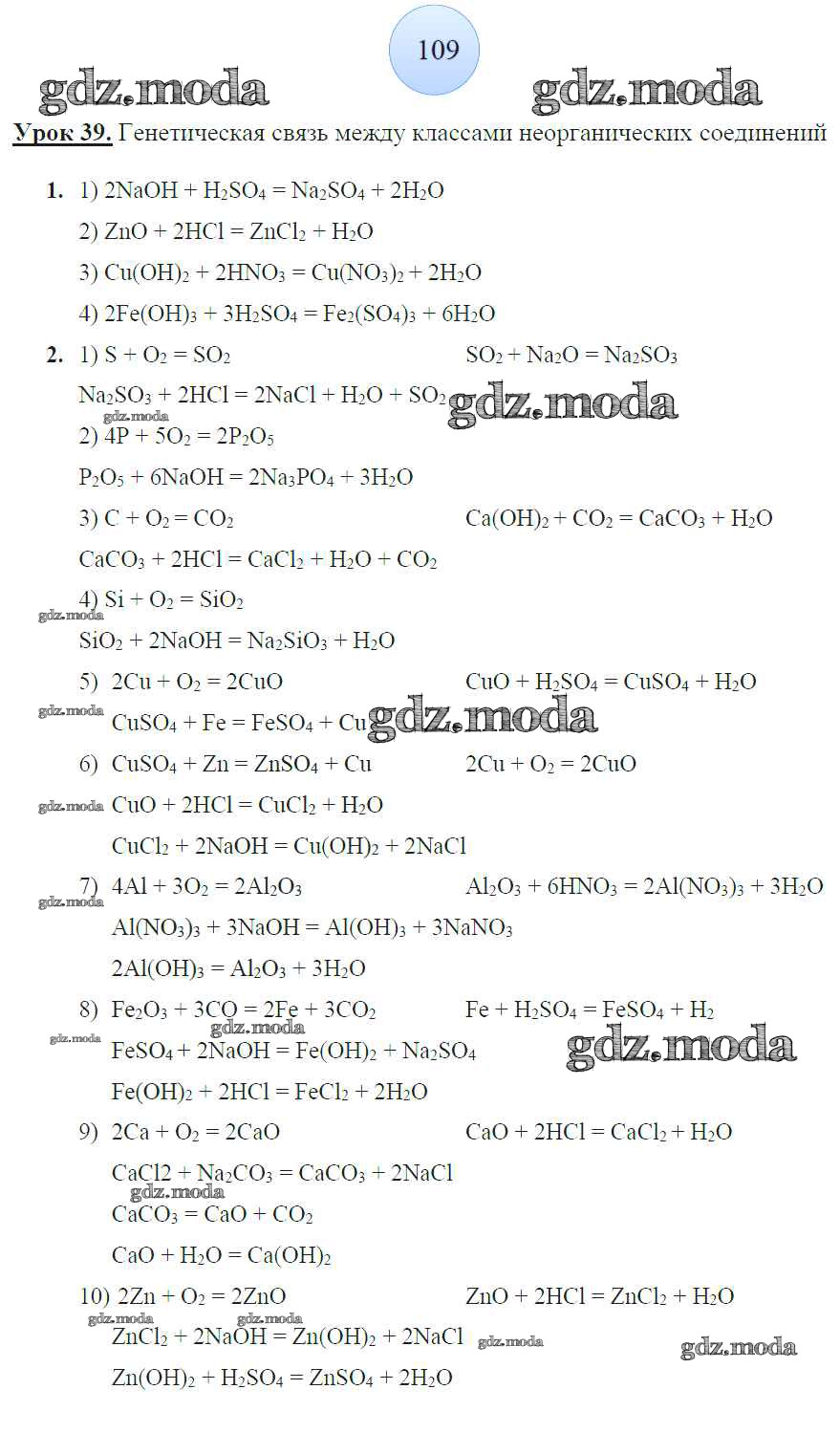 ГДЗ решение к заданию № 109 Химия 8 класс рабочая тетрадь Боровских Т.А. (к уч. Рудзитиса) Экзамен 2013 ФГОС бесплатно на гдз.мода!