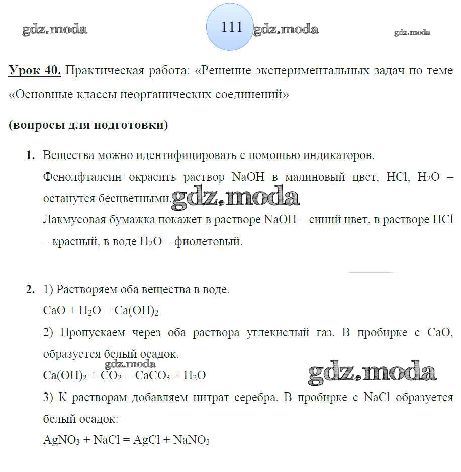 ОТВЕТ на задание № 111 Рабочая тетрадь по Химии 8 класс Боровских УМК
