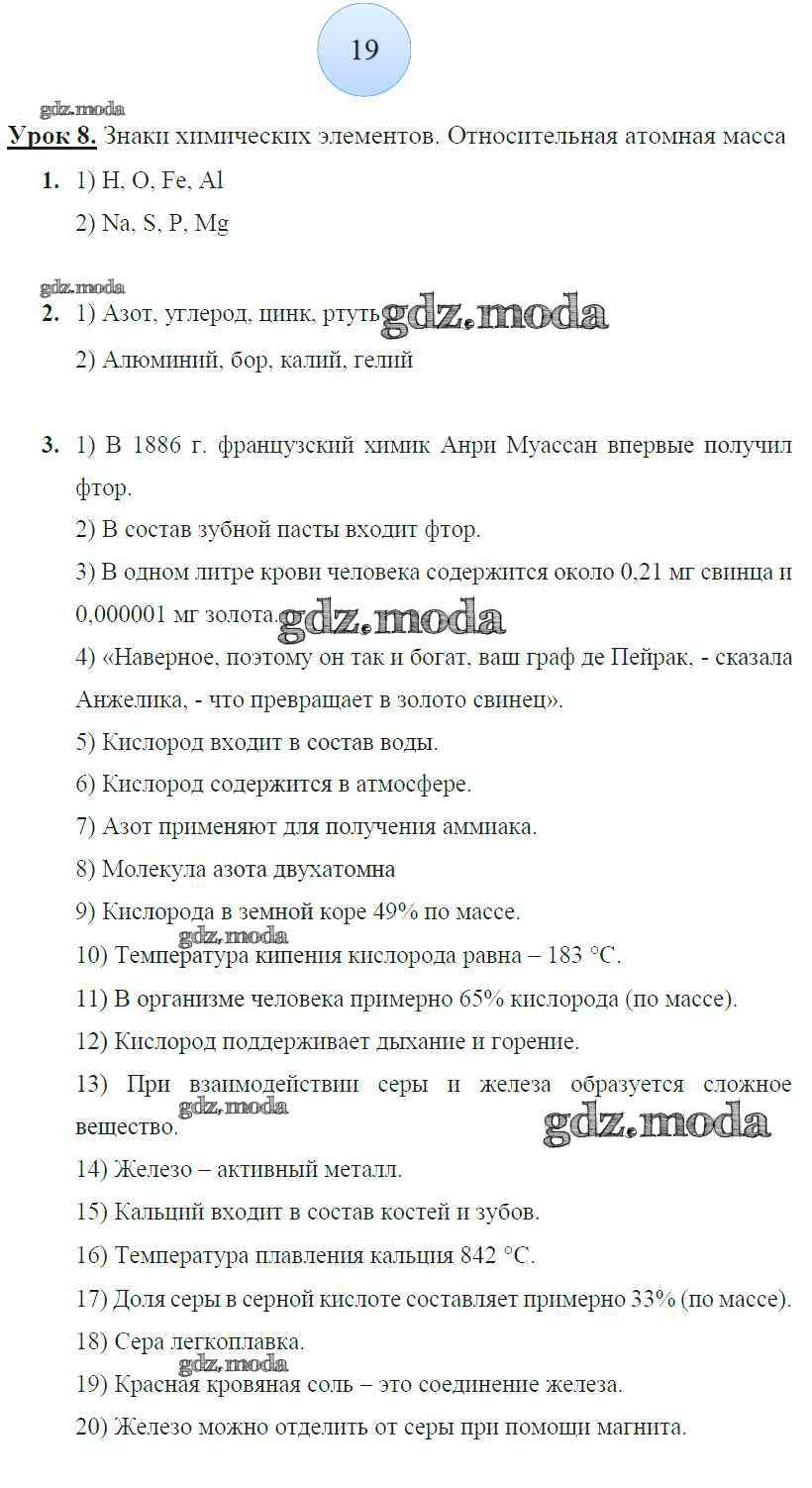 ОТВЕТ на задание № 19 Рабочая тетрадь по Химии 8 класс Боровских УМК